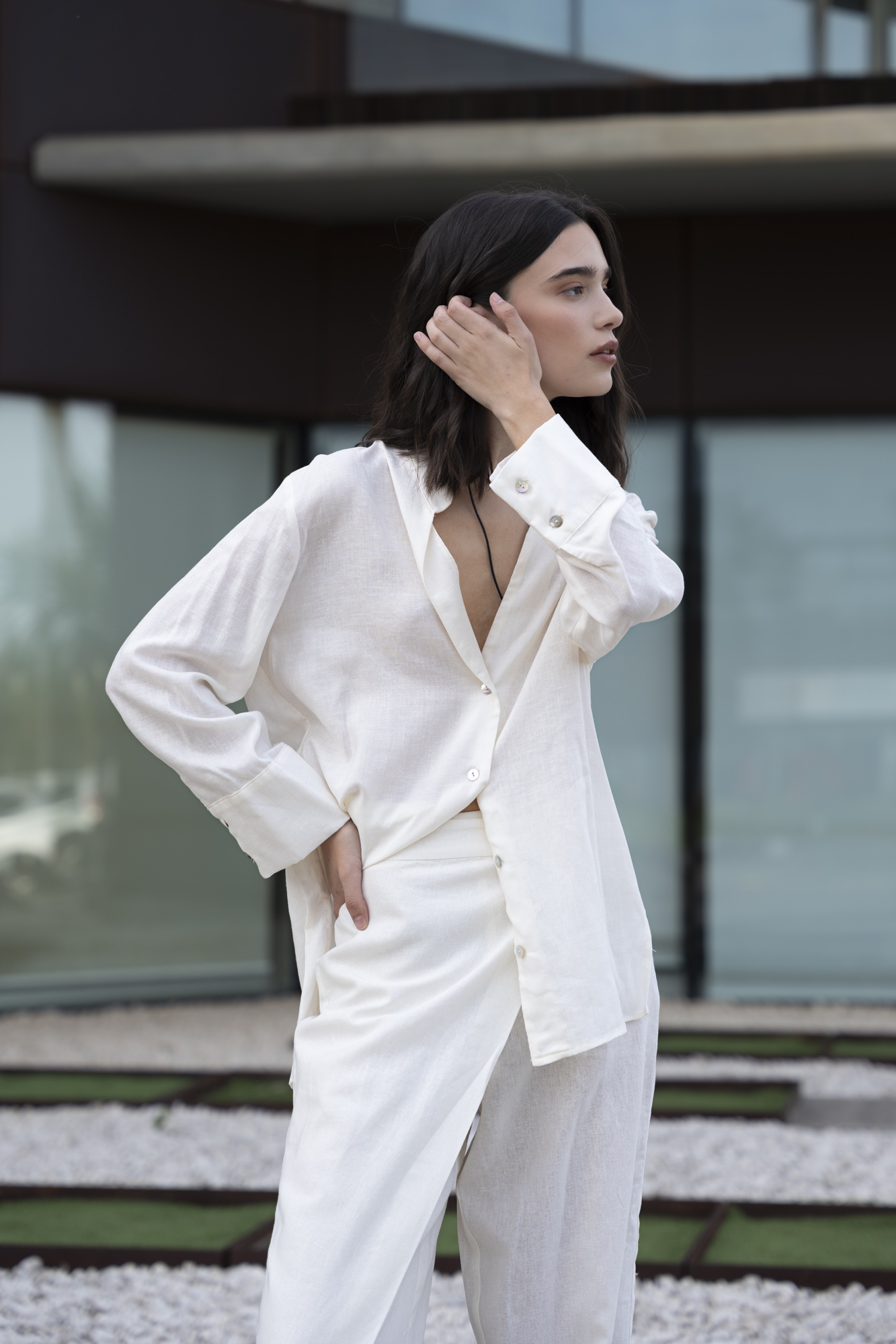 / Camisa cuello mao con lino